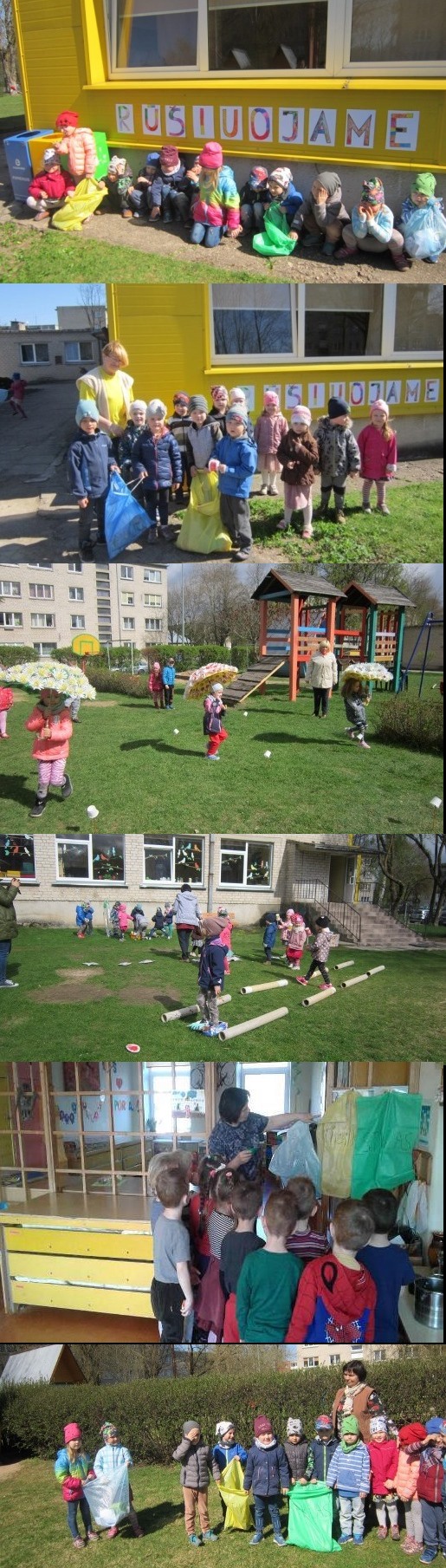 Sutvarkę grupes, ugdytiniai, kartu su pedagogėmis, rinko šiukšles iš savo aikštelių prisiminė į kokį konteinerį mesti vieną ar kitą atlieką. Džiugu, kad prie šios iniciatyvos, puoselėjant darželio aplinką prisijungė ir tėveliai. Vaikai džiaugėsi matydami švarią, gražią gamtą.