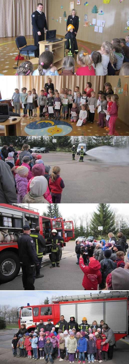 Daug džiugių emocijų vaikams suteikė tai, kad turėjo galimybę pasimatuoti gaisrininko striukę ir šalmą. Inspektoriai vaikams uždavinėjo klausimus, o vaikai ne tik į juos atsakė, bet ir pasakojo jiems nutikusias nelaimes. Jie nuoširdžiai bendravo su vaikais, apdovanojo juos įvairiais spalvinimui skirtais piešinukais. Taip pat į grupes vaikai parsinešė pieštus mašinų modelius, iš kurių gamino popierinį ugniagesių automobilį.
