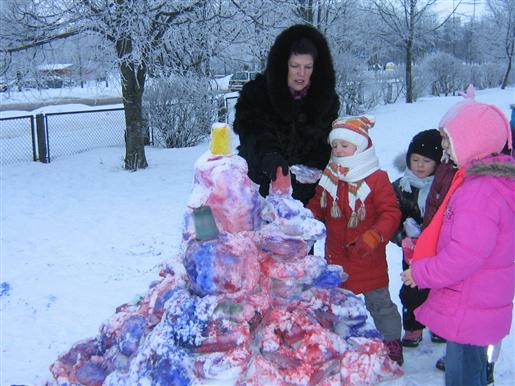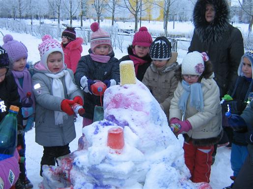 4. Lipdyti sniego senius, kitas sniego skulptūras, piešti ant sniego.