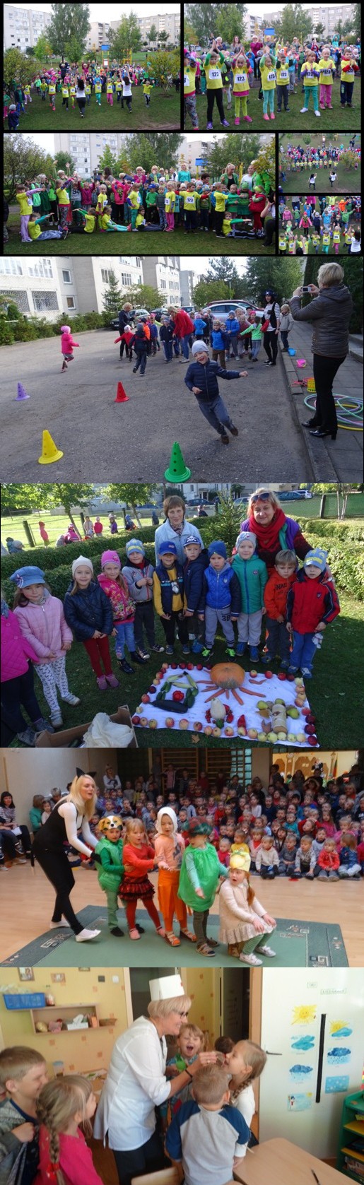 2015 m. sveikatos-sporto savaitės „Judėkime visi – ir maži ir dideli“ metu, vyko įvairūs renginiai: kiekvieną rytą, darželio bendruomenei organizavome mankštą lauke. Priešmokyklinių gr. vaikai dalyvavo masinėje mankštoje su „Ateities“ pagr. mokyklos bendruomene. Vaikai daug žino apie vitaminus, todėl daug džiugių emocijų suteikė Daktaro Aiskauda ir vitaminų A B C apsilankymas grupėse. „Linksmučių“ grupės vaikai parodė vaidinimą „Kaip katinėlis mokėsi sveikai gyventi“. Kitą dieną vyko Rudenėlio šventė „Ruduo užaugino“ , džiaugėmės dainelėmis, žaidimais, daržovių paradu (meninio ugdymo pedagogė A.Streckienė). Daug džiugių emocijų suteikė sportinių šokių užsiėmimas bendruomenei (aerobikos trenerė Loreta Šepikienė). Organizavome išvykas prie Masčio ežero, sportavome, lenktyniavome estafečių rungtyse.