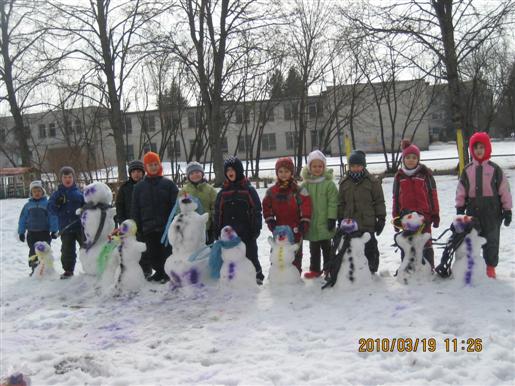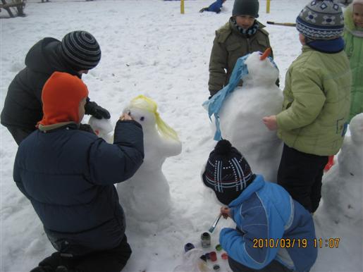 Šiemet žiemužė pasidarbavo iš peties: užteko ir šalčio ir sniego. Prisičiuožinėjom nuo kalnelių, braidžiojom po pusnis, tyrinėjom atspaudus sniege, o vėlyvas pavasaris leido vaikams pasidžiaugti limpančiu sniegu. Kovo 19 d. Trakų Vokės darželį apjuosė Senių Besmegenių eilė.