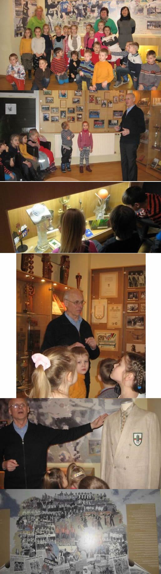 Vaikai susidomėję klausėsi Sporto namų vadovo pasakojimo, o vėliau dar įdomiau jiems buvo stebėti istorija tapusį sporto inventorių: seną, suvarstomą kamuolį, ledo ritulio lazdą, nuotraukas darytas dar prieš karą.
