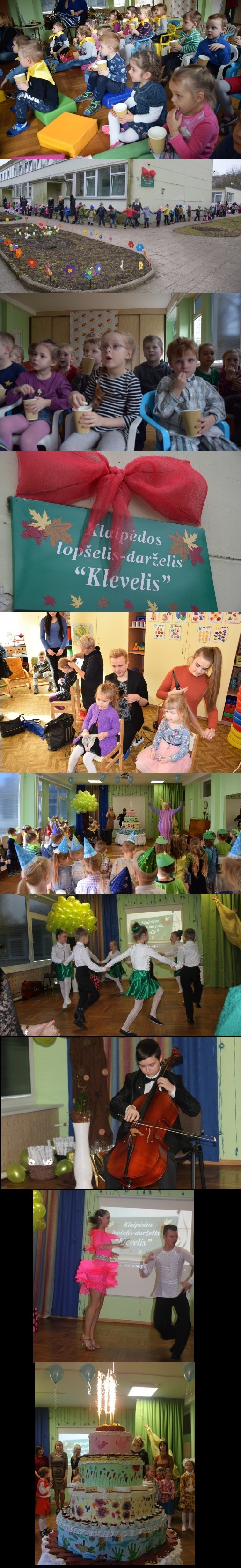 2016 m. kovo 14–18 d. Klaipėdos lopšelyje-darželyje „Klevelis“ aidėjo vaikų juokas ir klegesys. Visą savaitę linksmai šurmuliavo renginiai, skirti įstaigos veiklos 50-ties metų sukakčiai paminėti. Per tiek metų darželio gyvenime įvyko nemažai pokyčių – keitėsi žmonės, aplinka, pavadinimai, bendruomenės tikslai. Tačiau svarbiausios vertybės ir tikslai nesikeitė. Mes visuomet siekėme ir siekiame skiepyti vaikams gėrio, grožio, tiesos supratimą, sudaryti sąlygas vaikų kūrybinei laisvei, ugdyti sveikos ir saugios gyvensenos įgūdžius, padėti suvokti ir atsakyti į visus jiems iškilusius klausimus. 50-ties metų sukakties paminėjimui rengėmės iš anksto. Pramogos vaikams vyko visą savaitę. Pirmadienį kiekvienoje grupėje duris atvėrė gimtadienio dirbtuvės, kuriose vaikai gamino gėles, vėjo malūnėlius, grupės atributiką ir gimtadienio kepurėles. Antradienį darželyje siautė „Pavasariniai mados vėjai“. Klaipėdos siuvimo ir paslaugų mokyklos studentai šventiškai sušukavo vaikus, o tada prasidėjo pasirodymas ir fotosesija salėje. Trečiadienis – „Kinomanijos diena“. Vaikai žiūrėjo animacinius filmukus gimtadienio tema, įstaigos darbuotojų sukurtą filmuką „Puslapiai iš įstaigos gyvenimo“. Kaip tikrame kino teatre visi buvo vaišinami kukurūzų spragėsiais. Ketvirtadienis – „Bičiulystės džiaugsmas“. Vaikai svečiavosi vieni pas kitus, puošė darželio kiemą savo padarytais gėlių žiedais ir susikibę už rankų apkabino darželį. 16. 00 val. vyko jubiliejinis koncertas miesto svečiams, buvusiems darbuotojams, bendruomenei. Lopšelio-darželio „Klevelis“ direktorė Birutė Šakalinienė įstaigos bendruomenei ir susirinkusiems svečiams tarė sveikinimo žodį ir linkėjo dar daug prasmingo laiko, kuris skaičiuotų tik džiugias akimirkas. Sveikinimo žodžius tarė gausus būrys gerbiamų svečių – Klaipėdos miesto savivaldybės Ugdymo ir kultūros departamento Švietimo skyriaus vyriausiosios specialistės Stefanija Vancevičienė ir Ramunė Zavtrikovienė, Lietuvos socialdemokratų partijos Klaipėdos skyriaus pirmininkė Lilija Petraitienė, Klaipėdos miesto pedagogų ir švietimo kultūros centro metodininkė Silvija Simpukienė, kurie įteikė darbuotojams padėkos raštus už nuoširdų darbą. Sveikinimo žodžius tarė socialiniai partneriai – lopšelių-darželių „Boružėlė“, „Aitvarėlis“, „Inkarėlis“, „Saulutės“ mokyklos-darželio direktorės, lopšelio-darželio „Klevelis“ tėvų tarybos nariai. Šventinio vakaro metu koncertavo buvę ir esami ugdytiniai, dainavo įstaigos pedagogai. Buvo rodomi įstaigos darbuotojų sukurti istoriniai filmai – apie įstaigos įkūrimą, statybas, aplinkos puoselėjimą, organizuojamas šventes ir pramogas. Didelį įspūdį paliko ugdytinės Lukrecijos močiutės Audronės Kūrienės istorija – ji pati lankė mūsų darželį, o dabar čia atvedė savo anūkę. Pedagogė Nijolė Venckūnienė papasakojo lopšelio-darželio „Klevelis“ pavadinimo atsiradimo istoriją. Prisiminimais dalijosi kiti buvę ilgamečiai įstaigos darbuotojai… Penktadienis – „Gimtadienio fiestos“ diena. Vaikai linksminosi su Burbulu Burbuliausku (Rolandu Stoniu). Linksmų smaližių laukė didžiulis gimtadienio tortas.