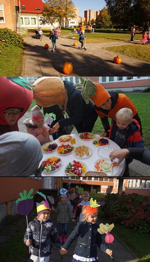 Vaikai demonstravo savo kūrybiškumą žaisdami vaidinimą „Vaidinimų kraitelėje“, konstravo daržoves iš lego, lipdė iš plastilino, kartu su auklėtojomis kūrė plakatus apie pasirinktą daržovę. Vikrumą sportinėje pramogoje: dalyvavo estafetėse veždami daržoves karučiuose, su paspirtukais vikriai vingruodami tarp gražuolių moliūgų, sportavo su kukurūzų burbuolėmis.