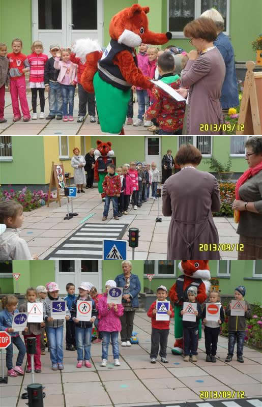 2013 m. rugsėjo 12 d. vyko saugaus eismo šventė, kurią organizavo priešmokyklinio ugdymo pedagogės Olga Spičkina, Marina Kuramšina, Natalja Buraja, meninio ugdymo pedagogė Elena Čerkasova, plaukimo instruktorė Natalja Butkevič kartu su Utenos apskrities vyriausiojo policijos komisariato Visagino policijos komisariato Prevencijos poskyrio pareigūnais. Į šventę pas vaikus atvyko visų vaikų geriausias draugas Lapiukas Policininkas. Jis kartu su vaikais pakartojo saugaus elgesio kelyje taisykles, kelio ženklus, kaip pereiti pėsčiųjų perėją, ką reiškia šviesoforo spalvos. Saugaus elgesio mokėsi ir nepaklusnioji Babka Kanapka, kuri nežinojo, kaip elgtis kelyje, ką reiškia kelio ženklai, kodėl negalima žaisti gatvėje. Lapiukas Policininkas palydėjo vaikus iki šalia darželio esančios pėsčiųjų perėjos ir išmokė, kaip teisingai reikia pereiti judrią gatvę. Vaikai buvo labai įdėmūs ir atidžiai klausėsi savo Draugo. Dabar jie žinos, kaip saugiai ateiti į darželį ir saugiai pareiti į namus.