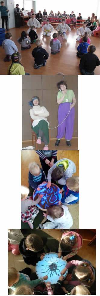 2013 m. buvo paskelbti Sveikatingumo metais, 2014 m. – Vaikų sveikatos metais. Todėl į tai atsižvelgdami 2014 metų sausio 27-31 dienomis Kužių lopšelio-darželio „Vyturėlis“ pedagogai organizavo projektinę sveikatingumo savaitę „Terapijų sūkury“, kurios tikslas – emocionalus, kūrybingas, muzikalus vaikas – sveikas ir saugus vaikas. Vaikystė – tai tas laikotarpis, kada formuojasi žmogaus asmenybė. Vaiko psichika šiuo etapu labai imli išorinės aplinkos poveikiui. Mažieji labiausiai pažeidžiama visuomenės dalis. Jie nesugeba susidoroti su šiandienos emociniu stresu, negali paaiškinti savo emocijų: dažnai susiduria su bendravimo sunkumais, didesniu nesusikaupimu, sudėtinga adaptacija, motyvacijos stoka, pažintinės raidos sutrikimais ir pan. Siekiant iškeltų sveikatingumo savaitės tikslų ir uždavinių įgyvendinimo buvo taikomas netradicinis ugdymo metodas – terapija. Pirmadienis buvo „Jogos ir kvėpavimo terapijos“ DIENA (pratimai pradedantiesiems), kurios tikslas – darna, ramybė, atsipalaidavimas. Pirmieji sveikatingumo savaitės svečiai buvo Freken Bok ir Karlsonas, kurie sukūrė teigiamą emocinę nuotaiką ir gerai nuteikė visai darbo savaitei. Joga – tai pats galingiausias ginklas, sunaikinantis mūsų fizines ir dvasines negalias, baimes nepilnavertiškumo kompleksą. Joga ypatingai tinka jaučiantiems stresą, tiems, kurie dažnai nerimauja. Darželiečiai šią dieną mokėsi nusiraminti, atsipalaiduoti su muzikos garsais ir būdami tyloje, atliko įvairius kvėpavimo pratimus. Taisyklingas kvėpavimas sveikatai turi didelės įtakos, o svarbiausia, tai turėtų virsti kasdieniniu įpročiu. Antradienis – „Žaidimų ir sporto terapija“ – svarbu ne sportiniai rezultatai, o fizinis aktyvumas. Šios dienos ypatingieji svečiai – Kuršėnų Kyokushin Karate klubo DAO karatistai ir jų treneris Valdemaras Mitkus. Jis vaikams pristatė vieną iš populiariausių sporto šakų Lietuvoje – kyokushin karate. Akcentavo, kad karate tai sporto šaka, kurią kultivuojant galima stiprinti savo sveikatą, tobulinti savo fizinę būklę ir koordinaciją, sumažinti kasdieninę įtampą ir agresiją, nugalėti savo silpnybes. Tai sporto šaka, kuri padeda ugdyti ištvermingumą, discipliną, dėmesio sutelkimą. Jaunieji karatistai pademonstravo karate kovos meną, savo sportinę techniką, mokė darželiečius taisyklingai atlikti įvairius fizinius pratimus, taisyklingos kūno laikysenos. Tai reikalavo susikaupimo, dėmesingumo, tikslaus atkartojimo. Vaikai mėgino skaičiuoti japoniškai. Išmoko svarbiausią kyokushin karate žodį „os“, kuris tariamas pasisveikinant ir atsisveikinant, atsakant treneriui. Trečiadienis – „Spalvų ir kvapų terapija“ – išlaisvink mintį, atpalaiduok kūną. Į kūrybos terapiją vaikus subūręs dalininkas papasakojo apie spalvų ir kvapų simbolinę bei emocinę reikšmę, neįprastą gamtinių medžiagų panaudojimą. Vaikams pristatyta nauja kūrybinė erdvė – šviesos stalai. Ant jų vaikai „piešė“ kmynais, pipirais, gvazdikėliais, džiovintais krapais. Tai padėjo atskleisti vaikų saviraišką. Įsitikinome, kad vaikų vaizduotė beribė – gimė originalūs žiemos vaizdai. Šilta, draugiška aplinka suteikė jaukumo. Vaikai išmoko būti viena komanda, dalintis ir pasitikėti, ši veikla paskatino juos eksperimentuoti ir kurti. Ketvirtadienis – „Šokio, judesio ir muzikinių garsų terapija“ – patirk judėjimo malonumą. Šokio specialistė Daiva Virakienė iš Šiaulių m. atkreipė vaikų dėmesį į šokio judesį – jis turi būti lankstus, plastiškas, harmoningas, gražus. Judesys yra pats natūraliausias emocijų raiškos būdas, tačiau yra vaikų, kurie yra atsiskyrę, susikaustę, užsidarę. O šokis padeda atsipalaiduoti, susidraugauti su baimėmis, šalina neigiamus jausmus, emocijas, nuotaikas. Šokdami, laisvai judėdami, vaikai lavino judesių grakštumą, ritmiškumą, tempo pajautimą. Muzika – garsų menas. Įvairūs muzikos garsai, kaip ir šokis, veikia žmogaus nuotaiką ir jausmus. Vaikai skiriasi savo temperamentu. Vieni yra jautrūs, daugiau verkia, kiti energingi ir pakantesni. Vieni yra judresni, kiti pasyvesni. Todėl kartu su vaikais klausėmės lėtų, ramiai nuteikiančių kūrinių, o labiau užguitiems ir prislėgtiems pasiūlėme greitesnių ir linksmesnių. Vadinasi, priklausomai nuo to, kokia melodija skambės, vaiką galima ir nuraminti, ir suteikti jam energijos. Penktadienis – „Grožio terapija“ – patirk estetinį pasitenkinimą. L-d vaikus aplankė Kužių miestelio kirpyklos šukuosenų meistrė Giedrė ir nagučių puoselėtoja Daiva. Netikėtai į l-d atklydusią nevalyvą mergaitę svečiai drauge su vaikais mokė, kad vaikai visada turi būti tiktai švarūs ir tvarkingi – ir tik tuomet jie gali jaustis gerai. Juk nešvariai ir netvarkingai atrodantys būna paniurę, irzlūs, nelaimingi, dejuojantys, viskuo nepatenkinti, nuolat kaltinantys kitus. O tvarkingi vaikai – visada džiaugsmingi, nuotaikingi, energingi, žvalūs. Ugdytiniai pažiūrėję senosios animacijos filmuką „Ai ir Oi“, kuris pamokė draugystės, tarpusavio pagalbos ir supratimo, nutarė padėti mergaitei. Vaikai įsitikino, kad. draugiškumas atneša džiaugsmą ir gerą nuotaiką. Visų ugdytinių tėvelių noras – kad jų atžalos būtų mylimi ir sveiki. Šių norų vedini į vaikų sveikatą, gyvenimo įgūdžių formavimą pažiūrėjome kitu kampu. Sveikatingumo savaitės metu siekėme, kad vaikai gebėtų valdyti savo emocijas (mokėtų ir džiaugtis, ir liūdėti), būtų savarankiški, atidūs, atsakingi, pasitikintys savimi ir kitais, mylėtų ir būtų mylimi.