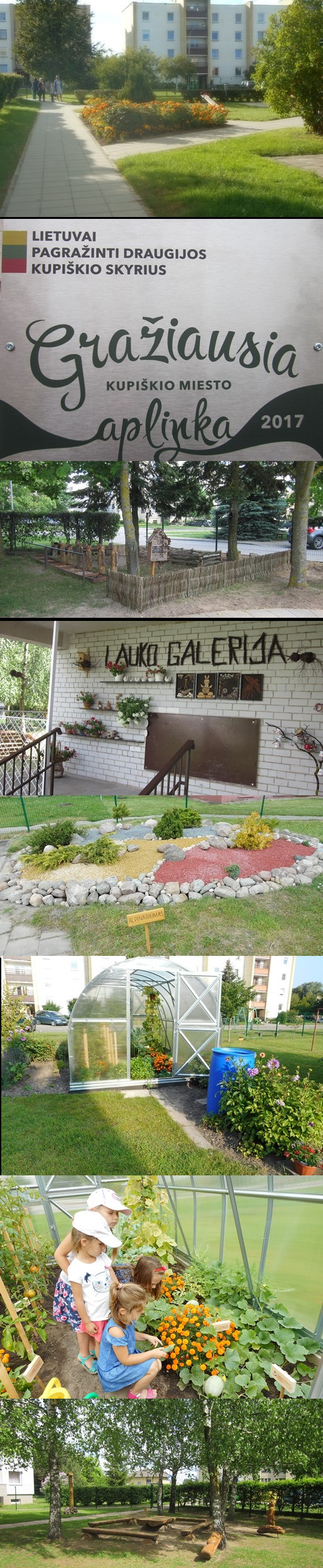 2017 m. liepos mėn. dalyvavome konkurse „Gražiausios Kupiškio miesto erdvės 2017“, o gruodžio 7 d. Lietuvai pagražinti draugijos Kupiškio skyriaus susirinkime darželio teritorija buvo pripažinta, kaip viena iš gražiausiai tvarkomų aplinkų Kupiškio mieste 2017 m. Tuo džiaugiamės ir dėkojame visiems, kurie prisidėjo prie mūsų darželio aplinkos puoselėjimo.
