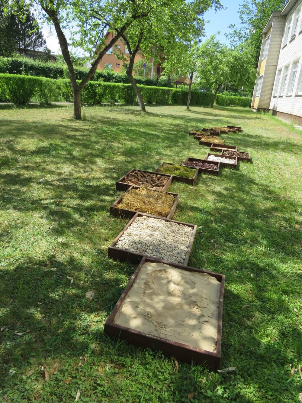 Grigiškių lopšelio-darželio ,,Pelėdžiukas“ sensorinis takelis ,,įsikūrė“ kiemo sodelyje. Takelis šiek tiek priminė tvarkingai išdėliotus šokolado gabalėlius, įdarytus pušų, eglių kankorėžiais, jūros akmenukais, smėliuku, žvyru, kaštonais, medžio drožlėmis, medienos kaladėlėmis, samanomis, šiaudų šluotelėmis…