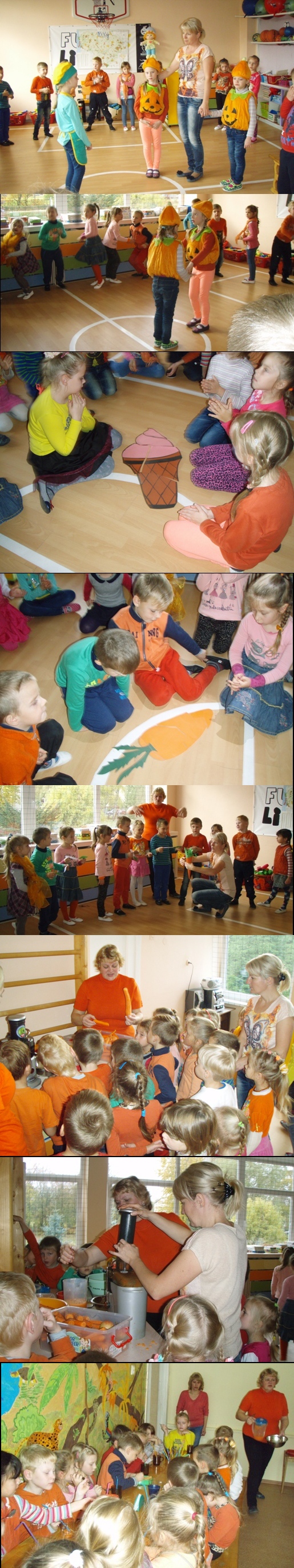 Kai susėdome prie stalo, su pasigardžiavimu gėrėme sultis, ragavome įvairių morkų salotų. Ši pramoga suteikė vaikams žinių apie morkų naudą žmogaus organizmui, gerino bendradarbiavimo įgūdžius. Pedagogės džiaugiasi, kad tokios pramogos skatina vaikų, jų tėvelių iniciatyvą stiprinti sveikatą: vaikų, savo, bendruomenės.