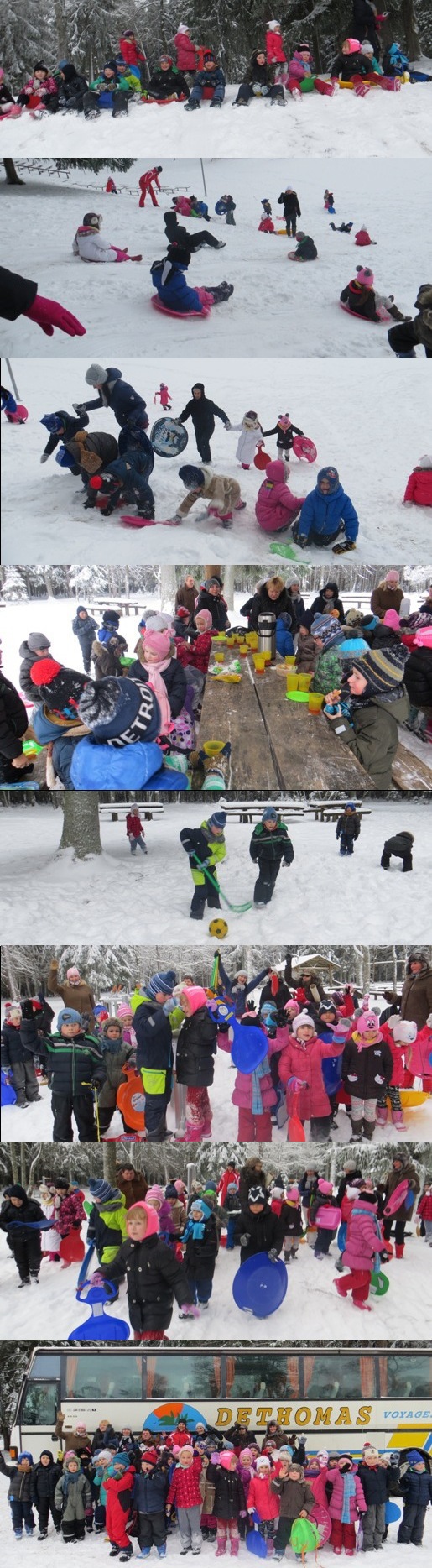 Pušyne vaikus pasitiko dėdė Girinis, kuris aprodė savo valdas, papasakojo, kaip miške elgtis, bei pakvietė pasimankštinti. Vėliau vaikai dalyvavo estafetėse, smagiai čiuožinėjo nuo kalniuko, išbandė jėgas virvės traukimo rungtyje, ieškojo gyvūnų bei paukščių sniege paliktų pėdsakų ir paliko lauktuves miško gyventojams. Visi vaišinosi Kiškio pyragu, gėrė žolelių arbatą.