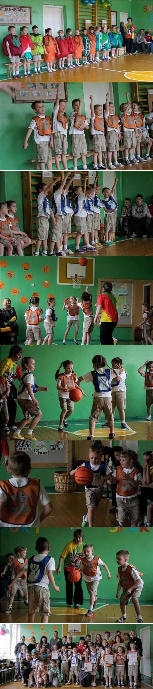 Šventę pradėjo ir visus pasveikino ,,Daržovių paradas“. Vaikai pristatė įvairiausias daržoves, jų naudą ir vitaminingumą, pademonstravo kamuolio valdymo techniką, įvairius sportinius elementus. Tėveliai turėjo galimybę savo jėgas išbandyti taiklumo estafetėje. Supažindinus su mažojo krepšinio taisyklėmis, po komandų prisistatymų prasidėjo krepšinio varžybos. Pasibaigus varžyboms, darželio direktorės pavaduotoja ugdymui Saulė Sadauskienė paskelbė rezultatą, pasidžiaugė įspūdingomis akimirkomis. Viešnia Viktorija pasidalino mintimis apie šias rungtynes, jų skirtumą nuo profesionaliojo krepšinio. Ji susižavėjo vaikų įgūdžiais šiame sporte, ypač džiaugėsi, kad varžybose dalyvavo ne tik berniukų, bet ir mergaičių komandos. Praėjus entuziastingoms, atkaklioms mažojo krepšinio rungtynėms vaikai buvo apdovanoti pagyrimo raštais, medaliais ir sultimis.