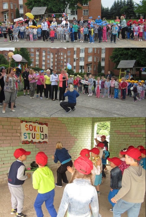 Po nuotaikingo šventės atidarymo ir mankštos pratimų ugdytiniai išsiskirstė į parengtas stoteles su skirtingomis užduotimis: futboliuko stotelę, kur išbandė kojų vikrumą varydamiesi futbolo kamuolį, estafečių stotelę kurioje galėjo varžytis ir išbandyti savo jėgas su savo bendraamžiais, tinklinio ir boulingo stotelėse rankų miklumą, akies taiklumą. Šokių stotelėje vaikai galėjo improvizuoti, pajusti muziką, veiksmų eigą. Trijų rungčių stotelėje ugdytiniai mokėsi valdyti savo kūną, ugdytis valią , ištvermę. Nepamiršti liko ir patys mažiausieji įstaigos vaikučiai . Jie drauge su auklėtojomis mėtė kamuoliukus, šokinėjo hopais, rinko spalvotas lėkšteles, žaidė su parašiutu.