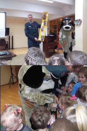 Ta proga „Ančiukų“ grupės auklėtojos N. Piliponienė ir L. Griškelienė sukvietė visus darželio ugdytinius į susitikimą su Marijampolės apskrities vyriausiojo policijos komisariato kelių policijos skyriaus viršininku Rolandu Gyliu. Su juo kartu atvyko ir policijos bičiulis Amsius. Svečiai vaikučiams aiškino, kuriose vietose galima pereiti gatvę , uoliai klausė, ar gerai vaikai pažįsta šviesoforo spalvas, pasakojo vaikams, kaip reikia elgtis viešose vietose, suteikė mažiesiems žinių apie atšvaitų svarbą, aiškino, kada ir kur juos reikia segėti. Susitikimo metu pareigūnas mažiesiems parodė bei pakomentavo policijos bičiulio Amsio trumpametražius animacinius filmukus. Vaikai susidomėję žiūrėjo, kas nutinka, kai su kamuoliu žaidi šalia gatvės, kodėl važiuojant automobiliu reikia prisisegti saugos diržą, kaip reikia saugiai važiuoti dviračiu, kaip elgtis, likus vienam namuose. Vaikai atidžiai išklausė patarimus, kaip apsisaugoti nuo telefoninių sukčių, kaip elgtis su nepažįstamais žmonėmis.