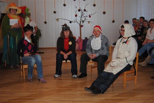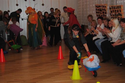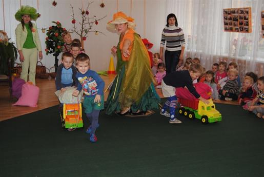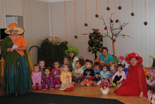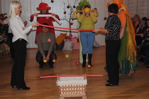 Kitą dieną, dėdė rudenėlis su savo obuoliukais aplankė mūsų udgytinius. Salėje žaidė žaidimus, surengė estafečių, dainavo kartu su vaikais. Taip pat vaišino vaikus saldžių obuolių pyragų, skaniais raudonais obuoliais bei obuolių sultymi.