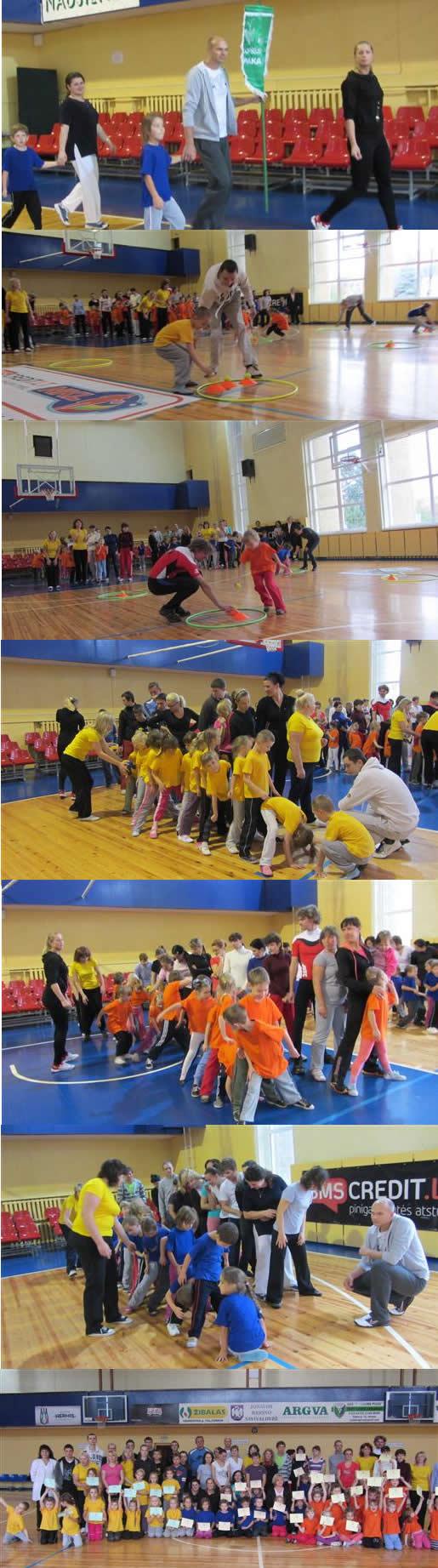 „Obuoliukai“, „Nykštukai“ (pedagogė Rasa Ramančiuckienė) atliko 5 estafetes. Jos metu vaikai su tėveliais turėjo ridenti kamuolį, pralysti pro lankus, apibėgti kliūtį… Linksmiausia rungtis – vaiko nešimas ant tėvelio ar mamos rankų. Visoms šeimoms buvo įteikti padėkos raštai. Laimėjo vienybė, draugystė, šypsena.