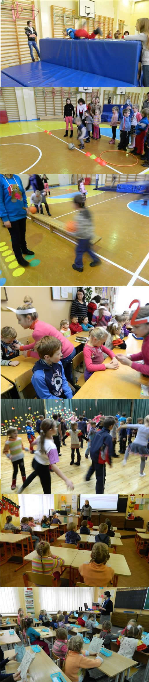 Nuvesti į didelę sporto salę, ugdytiniai įveikė kliūtis, spardė ir rideno kamuolį, lindo tuneliu… Aktų salėje – ketvirtokai mažuosius mokė meškučio šokio, muzikos klasėje – kartu užtraukė dainelę, užsienio kalbų kabinete – kai kurie kalbėjo angliškai… Galop, nukeliavę į ketvirtokų klases, sėdėjo mokykliniuose suoluose kaip tikri pirmokėliai. Vaikų akelėse žibėjo smalsumas ir žingeidumas, tačiau atėjus pirmam susipažinimui, kai kurie vaikai nedrąsiai tarė savo vardą ir tiesė rankutes. Į darželį vaikai parsinešė daug dovanų ir įspūdžių. Paklausti kaip sekėsi mokykloje, turėjo ką papasakoti. Nedai, Skaistei, Kajui, Benui, Urtei, Enrikai, Austėjai, Vidui, Akvilei patiko „valgomos apyrankės“ (apyrankė iš saldainių), mokytojų pagaminta knygelė „Kačiukas“, linkėjimų atvirukas „Besmegenis“, ridenti kamuolį ant suolo, lįsti pro tunelį, lipti ant čiužinio, šokti meškučių šokį, filmukas apie abėcėlę, skaičius keisti vietom, skaičiuoti 1,2,3… langai, patiko skaičiuoti angliškai, valgykla, prausykla, klasės… O paklausus, kas nepatiko, atsakė: „nepatiko- nebuvo“.