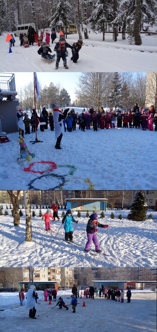 Spaudžiant šaltukui vaikai pasimankštino ir, sulaukę tėvelių aktyvaus pritarimo, guviai išbandė visas ledo rutulio, biatlono, čiuožinėjimo su rogutėmis ir slidėmis užduotis, kurias kūrybiškai parengė šiam renginiui organizuoti ir pravesti susijungusios „Olimpinio ugdymo“ koordinavimo ir „Netradicinių renginių“ darbo grupių pedagogės: plaukimo instruktorė Regina Jasiūnienė, priešmokyklinio ugdymo pedagogė Daiva Kairienė, ikimokyklinio ugdymo auklėtojos Jurgita Valickienė, Rasa Baltrūnienė ir Daiva Daukšienė.