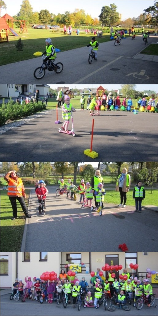 Pramoga prasidėjo vyresniųjų grupių ugdytinių komandų prisistatymu. Po pokalbio apie saugų važinėjimą dviračiu ar paspirtuku įvyko eisena aplink darželį. Vaikai turėjo galimybę išbandyti savo vikrumą, pastabumą, išradingumą įvairiose rungtyse: pravažiuodami paspirtuku ar dviratuku neužkliudžius orientyrų, rungtyniaudami estafetėse.  Jaunesniųjų grupių ugdytiniai buvo aktyvūs renginio žiūrovai, palaikė savo vyresniuosius draugus. Pramogą organizavo ir vedė priešmokyklinio ugdymo pedagogė Vilma Saveikienė bei auklėtojos Vida Krivickienė ir Algimanta Palionienė.