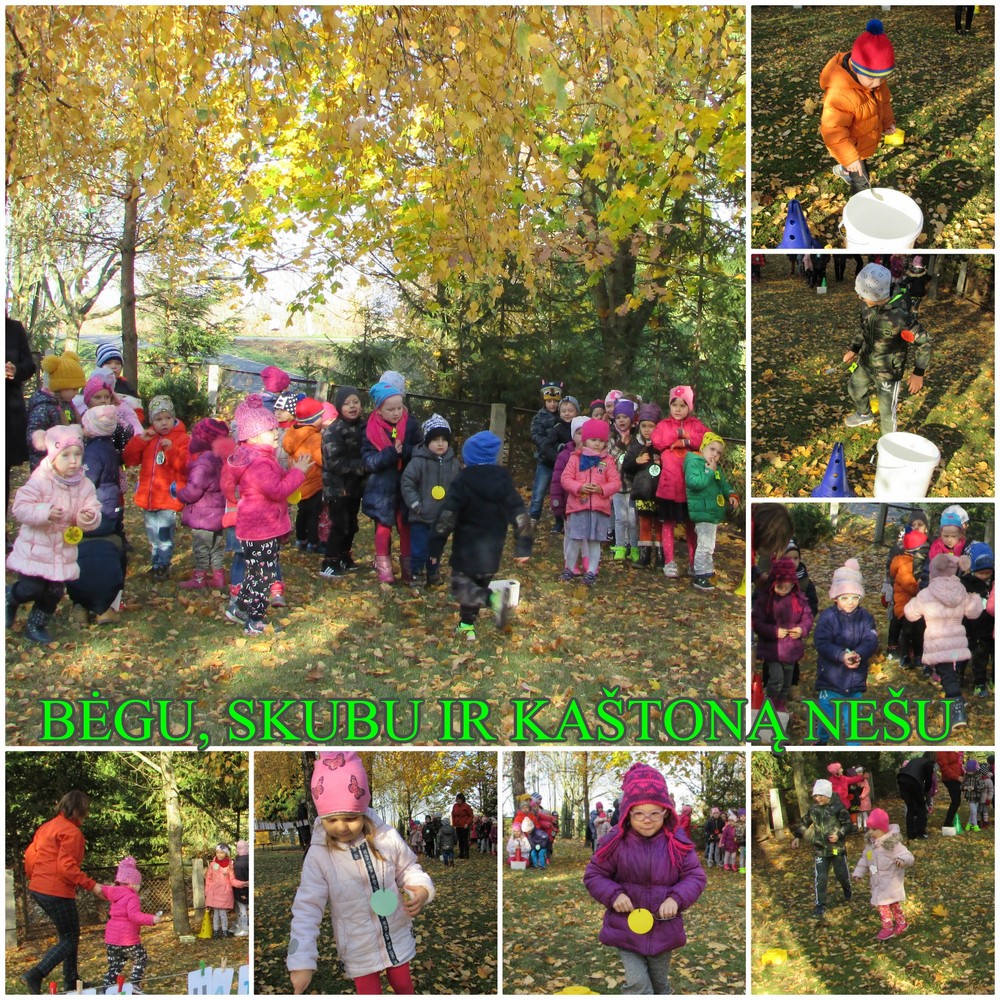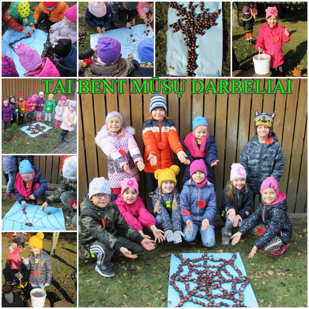 Spalio 16 d. „Bitutės“ skyriuje vyko vienos dienos sveikatinimo projektas „Bėgu rudenėlio takeliu ir kaštonų tau nešu“ . Visi projekto dalyviai parkelyje mankštinosi, vėliau dalyvavo įvairiose estafetėse, žaidė žaidimus, ieškojo klevo, kaštono, beržo lapų, skaičiavo juos. Kūrybinės veiklos metu tyrinėjo ir smalsavo žaisdami su gamtine medžiaga, dėliojo iš kaštonų „Lapo“ („Gėlyčių“ gr.), „Voro“ („Aviliukų“ gr.), „Medžio“ („Bitučių“ gr.) mandalas. Jos papuošė mūsų darželio aplinką. Vėliau visi ieškojo paslėpto lobio, o jų buvo net trys (kaštonų pilni kibirai). Suradę lobius rinkomės salėje, kur gaminome masažinį kaštonų baseiną, masažavome kojytes, vaišinomės tėvelių pagamintomis sveikomis vaišėmis (sveikuoliškais sausainiai, naminėmis sultimis, sode skintais obuoliais).