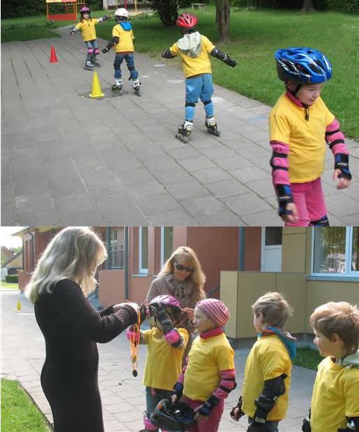 Panevėžio lopšelyje-darželyje „Kastytis“ 2012 m. gegužės mėn. vyko projektas „Važinėjamės riedučiais“. Projekto tikslas – skatinti vaikų fizinį aktyvumą, domėjimąsi kūno kultūros šakomis. Vyresnioji auklėtoja Roneta Tamelienė supažindino priešmokyklinių grupių vaikus su saugaus važinėjimosi riedučiais taisyklėmis bei taisyklingos stovėsenos ir važiavimo riedučiais pagrindais. Tėveliai pasirūpino, kad vaikai būtų tinkamai pasiruošę treniruotėms, turėtų apsaugas, šalmus. Ugdytiniai mokėsi važinėtis riedučiais darželio teritorijos takeliais. Nors iš pradžių mažiesiems riedutininkams sekėsi gana sunkiai ir ne visi pirmieji bandymai buvo sėkmingi, tačiau projektui baigiantis ugdytiniai džiaugėsi, kad išmoko ne tik gerai važiuoti tiesiai, bet ir gali apvažiuoti kliūtis, lenktyniauti. Už pastangas ir gerus rezultatus mažieji riedutininkai buvo apdovanoti prisiminimo diplomais bei medaliais.