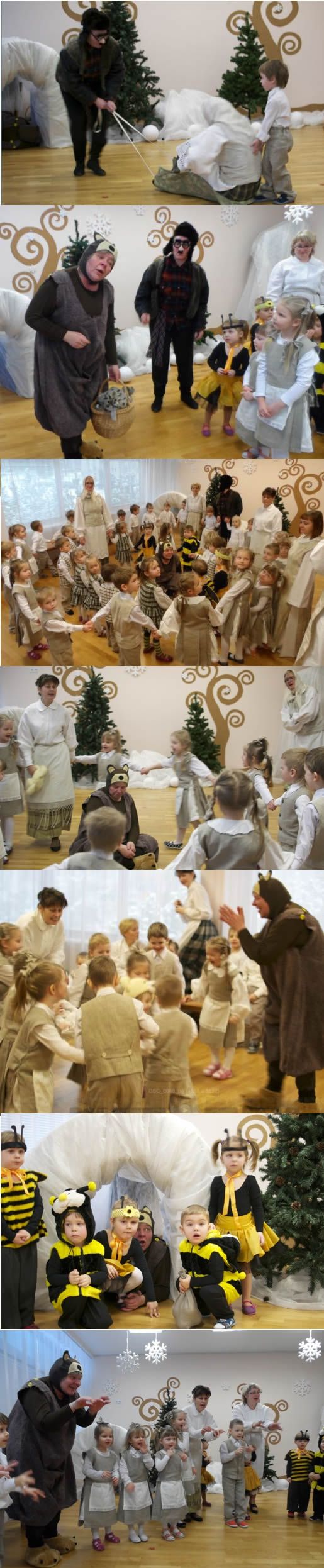 2015 m. sausio 23 d. Rokiškio lopšelio-darželio „Varpelis“ ikimokyklinio ugdymo „Drugelių“, „Boružiukų“, „Žiogelių“ ir „Lašiukų“ grupių vaikai ir jų pedagogės padėjo Diedukui (auklėtoja Inga Čičinskienė) ir Bobutei (auklėtoja Jolita Sapagovienė) žadinti Mešką (auklėtoja Rimantė Gudžiūnienė). Visi kartu aiškinosi, kas yra pusiaužiemis, kada jis švenčiamas. Kalbėjosi apie senovinį tikėjimą, pusiaužiemio papročius, draudimus bei orų spėjimus. Žaidė liaudies žaidimus, dainavo dainas. Pažadinta Meška pažaidė su vaikais, o atsidėkodama už linksmybes, davė jiems obuolių. Gauruotoji grįžo į savo guolį laukti pavasario.