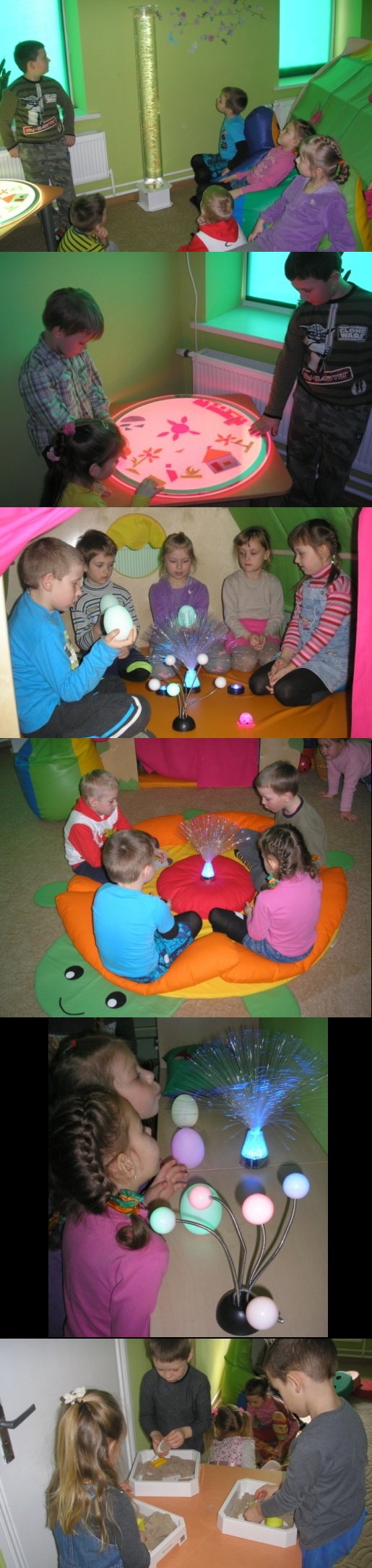 Sugužėję į gaiviai kvepiantį ir naujomis priemonėmis pripildytą kambarį vaikai džiugiai skubėjo viską išbandyti. Susėdę ant sėdmaišių darželio ugdytiniai stebėjo kylančius vandens burbuliukus, garsų ir kvapų terapijos sistema leido vaikams atsipalaiduoti padvelkus maloniam pušų kvapui ir aplink čiurlenant vandeniui. Visiems įdomu buvo dėlioti įvairias formas ant šviesos stalo, stebėti, kaip keičiasi sukurtų vaizdų spalvos. Mėgstamiausia vaikų vieta – namelis-slėptuvė. Jame visi drauge mėgavosi įvairiomis šviečiančiomis priemonėmis ir jas įvairiai išbandė. Vaikučių piršteliai mikliai darbavosi po kinetinį smėlį, kūrė įvairias formas. Kambarėlyje vaikai turės galimybę išlieti pyktį į „Pykčio pagalvę", ištrypti emocijas į „Pykčio ištrypimo kilimėlį", pakalbėti apie savo emocijas pasinaudodami „Emocijų pufais", „Emocijų kamuoliukais". Kambaryje gausu knygų, lego žaidimų. Vaikai liko patenkinti, teigė, kad labai kambaryje patiko – „smagu", „įdomu", „stebuklinga", „kaip pasakoje",- samprotavo ugdytiniai.