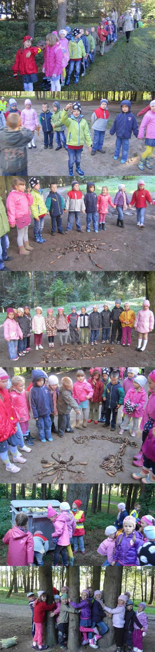 Ugdytiniai smagiai pažaidė žaidimus, su malonumu dalyvavo estafetėse, išbandė savo jėgas ištvermės konkurse. Su dideliu susidomėjimu tyrinėjo medžius, šakas, žoles. Vaikai pririnko daug gamtinės medžiagos: gilių, kankorėžių, lapų, šakelių. Kiekviena grupė iš surinktų kankorėžių kūrė savo paveikslą. Vaikų kūriniai priminė vorus, gėles, medžius, saulutes.