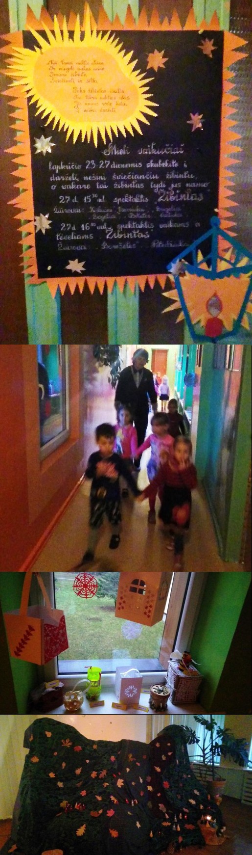 Ir šįkart 2015 m. lapkritį, nešini žibintais, tėvelių, vaikų ir darbuotojų gamintais, į Panevėžio lopšelį-darželį „Sigutė“ nykštukai atskubėjo su vaikais pabūti. Pamatę didelį ir tamsų kalną, jie nepasimetė tikrai, tamsos neišsigando. Pašvietę į būrį susirinkusių pirmųjų Panevėžyje sumanyton „Žibintų“ šventėn, pamatė, kad tai draugiškai nusiteikę bendruomenės nariai. Jau paūgėję nykštukai daineles dainavo, žiūrovai katučių negailėjo. Po koncertėlio auklėtojų, meninio ugdymo pedagogių spektaklis prasidėjo. Jame mažyčiai nykštukėliai klaidžiojo, paklydo, kol vaikučius su žibintais sutiko. Tada visi susidraugavo ir linksmi kartu keliavo. Spektaklyje skambėjo kanklių muzika, kurią skleidė Sigutės kanklininkų ansamblis. Meninio ugdymo pedagogė Sigutė Buziliauskienė papasakojo rateliu susėdusiems nykštukams apie ugnį, jos kilmę, naudą ir žalą, jei neatsargiai su ugnimi elgsis. Po to visi keliavo lopšelio-darželio koridoriais-tūneliu, kurį rankomis virš galvų susikabinę padarė tėveliai. Buvo tamsu, bet žibintais švietė vingiuotu labirintu lendantys vaikai ir kelias nušvito. Įkopę į kalną-sporto salę, vaikai sutiko ten žibintininką – auklėtoją Editą, kuri su vaikais linksmai bendravo, šmaikštavo, vis prisimindama, kad pamiršo pakirpti ūsus, todėl jie vis lindo į burną ir trukdė kalbėti. Kartu su vaikais aptarus tamsų metų periodą, pasižvalgius pro langus ir nepamačius žvaigždžių, žibintininkas išdavė paslaptį, kad žvaigždeles jis surinko į krepšį vaikučiams pavaišinti. O kai atesi kita naktis, danus tikrai spindinčiomis žvaigždelėmis nušvis. Vaikai ir svečiai „žvaigždeles“ ragavo, stebėjosi, kad nešaltos ir nespindi, bet visi buvo laimingi.