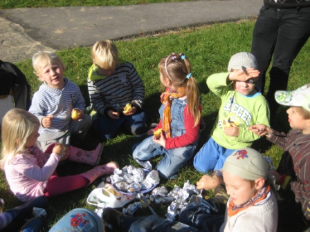 Prie šventės prisijungė Šilutės miškų urėdijos miško želdinimo inžinierė Audronė Balčiūnienė. Ji pakvietė visus prisidėti prie kaštonų gelbėjimo akcijos. Kaip žinia, mūsų krašto kaštonus jau kelinti metai kamuoja mikrodrugiai – kaštoninės keršakandės. Vienas iš būdų išnaikinti šiuos kenkėjus – rudenį deginti lapus. Abejingų neliko: mažieji ugdytiniai, tėveliai ir pedagogai grėbė, rinko nukritusius lapus, krovė į miškininkų padovanotus polietileninius maišus. Vaikai pasižadėjo rinkti lapus tol, kol nukris visi.