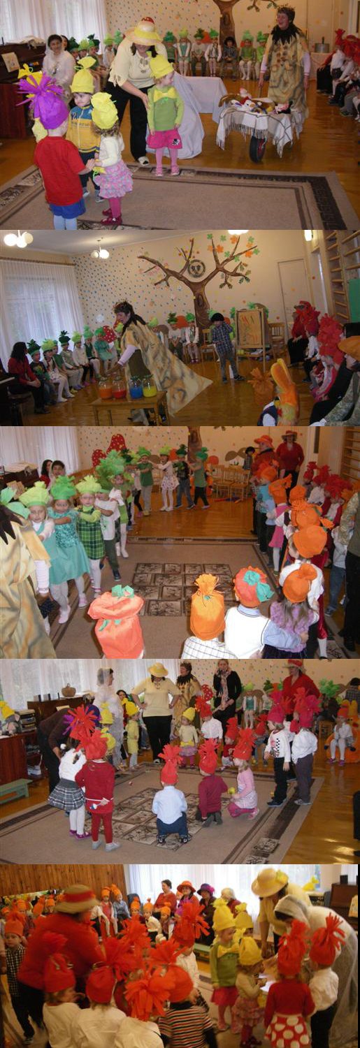 Ruduo – pats turtingiausiais ir dosniausias metų laikas, šis laikotarpis suvirpina širdį kai matai, kaip gamta nusidažo pačiomis gražiausiomis spalvomis. Nors lietus jau nuplovė spalvų paletę, tačiau tą popietę darželyje buvo daug spalvų. Vaikai pasipuošę įvairiaspalvėmis kepurytėmis dainavo, šoko, žaidė kartu su Rudenėliu – priešmokyklinės gr. pedagogė Genutė K., Šalna – meninio ugdymo pedagogė Virginija B. ir auklėtojomis.