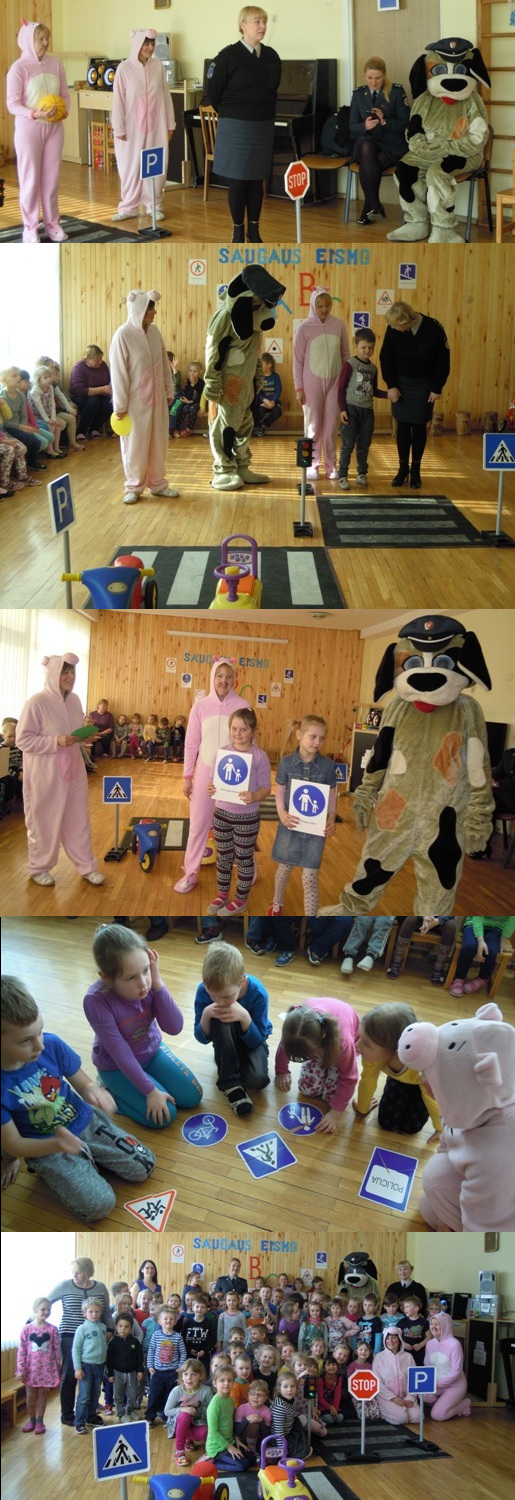 Šventės metu ugdytiniai susipažino su saugaus eismo taisyklėmis, kelio ženklais, mokėsi saugiai pereiti gatvę, minė mįsles, atsakinėjo į paršelio ir zuikio užduotus klausimus apie saugų eismą. Sužinojo, kad paskambinus 112 galima sulaukti pagalbos. Pareigūnai minėjo, kad labai svarbu vaikus įpareigoti teisingai elgtis nuo mažens, suteikiant jiems praktinių žinių.