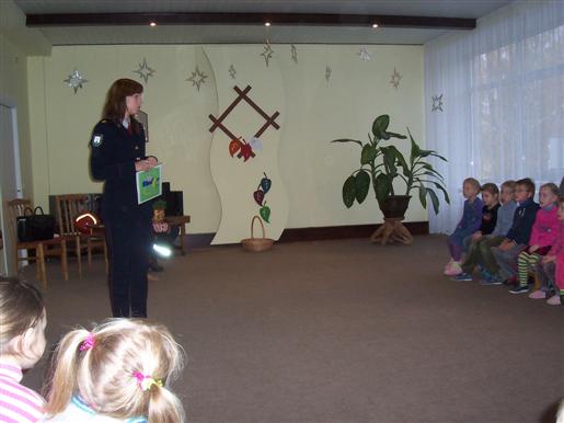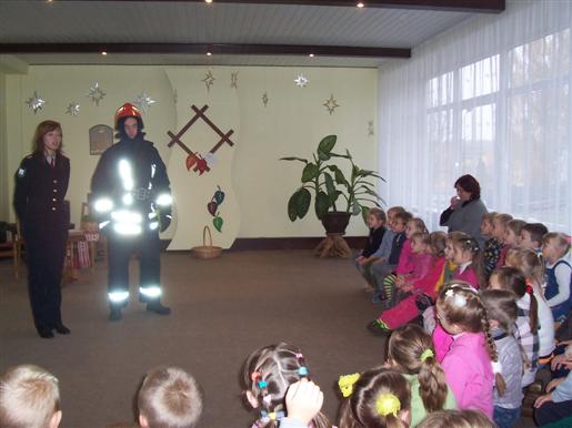 Spalio 20 dieną Šiaulių APGV Akmenės priešgaisrinės gelbėjimo tarnybos Valstybinės priešgaisrinės priežiūros poskyrio inspektorė Laura Savickytė ir gaisrininkas gelbėtojas Artūras Kojelis kartu su įstaigos pedagogėmis Alina Pivanovičiene, Rasa Borusevičiene, Rasa Dageliene 5-7 metų ugdytiniams pravedė saugaus elgesio su ugnimi valandėlę. Pokalbis apie ugnį, sukurtos situacijos, vaizdinė medžiaga palaikė vaikų domėjimąsi, padėjo daug sužinoti apie ugnies savybes ir ,,elgseną“.