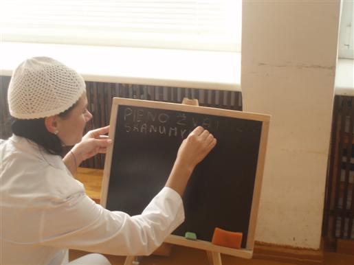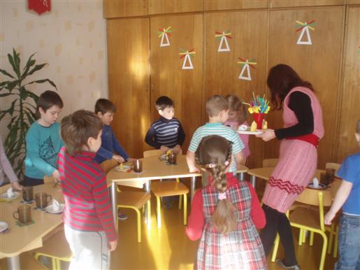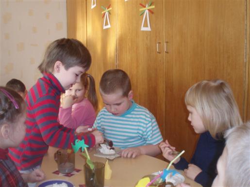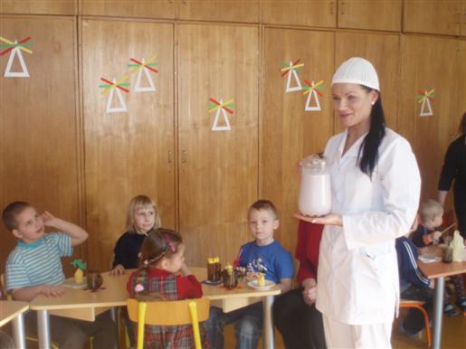 Daug dėmesio skyrėme vaikų kultūrinių-higieninių įgūdžių įtvirtinimui. Rytmečiui ruošėmės iš anksto: vaikai patys ar padedami auklėtojų lankstė popierines servetėles-padėkliukus, karpiniais puošė kokteilių šiaudelius. Tą dieną visi susirinkę salėje draugiškai serviravo šventinius stalus ir laukė pasirodančio Smagurio. Pasilabinę su Smaguriu vaikai diskutavo, kuo naudingas pienas ir jo produktai, kodėl jį reikia vartoti. Smaguris pasiūlė vaikams paragauti pieno kokteilio ir varškės deserto. Pasivaišinę vaikai galvojo pavadinimus pieno patiekalams, o auklėtojos balsavo ir rinko patį originaliausią. Pieno kokteiliui buvo suteiktas „Mū-mū“, o varškės desertui – „Varškytės Traškalytės“ pavadinimas.