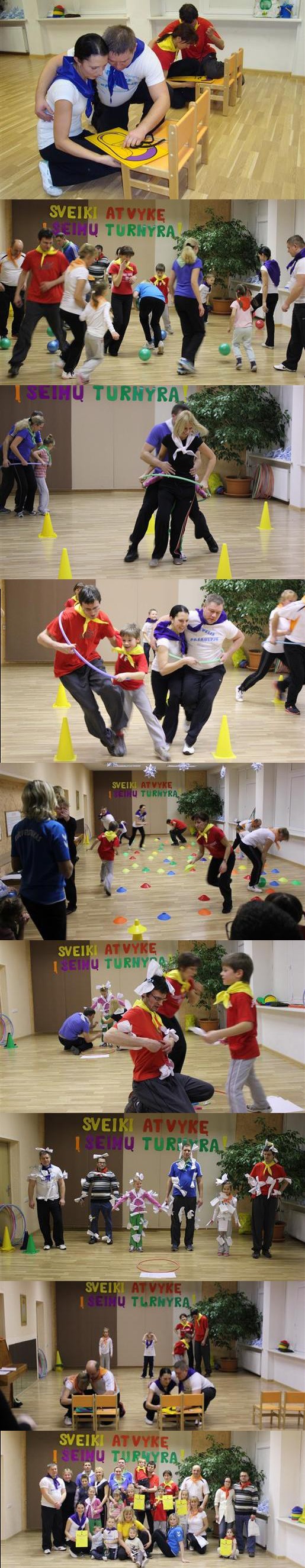 Šeimos, burtų keliu pasiskirsčiusios į du pogrupius, varžėsi įvairiose estafečių rungtyse („Trise lanke“, „Lenktynės su maišais“, „Didžiosios lenktynės“, „Pernešk kamuolius“ ir kt. ), žaidė žaidimus („Surask kamuolį“, „Kepurėlių bokštas“, „Magdute, kur tu?“). Sporto šventės dalyvius aktyviai palaikė ir sirgaliai – močiutės ir seneliai, broliai, seserys. Kiekviena šeima stengėsi kuo tiksliau ir greičiau atlikti užduotis, kurių tikrai netrūko. Sporto šventėje teisėjaujančios priešmokyklinio ugdymo pedagogės atidžiai stebėjo ir fiksavo rungčių nugalėtojus. Ir nors sakoma, svarbu dalyvauti, o nelaimėti, tačiau besivaržydamos estafečių rungtyse šeimos stengėsi iš visų jėgų. Tai kaip neapdovanoti už tokias nuoširdžias pastangas? Visi šventės dalyviai buvo apdovanoti padėkos raštais ir prizais. Pakili nuotaika, smagios šypsenos buvo pastebimos ne tik šventės dalyvių, bet ir sirgalių veiduose.