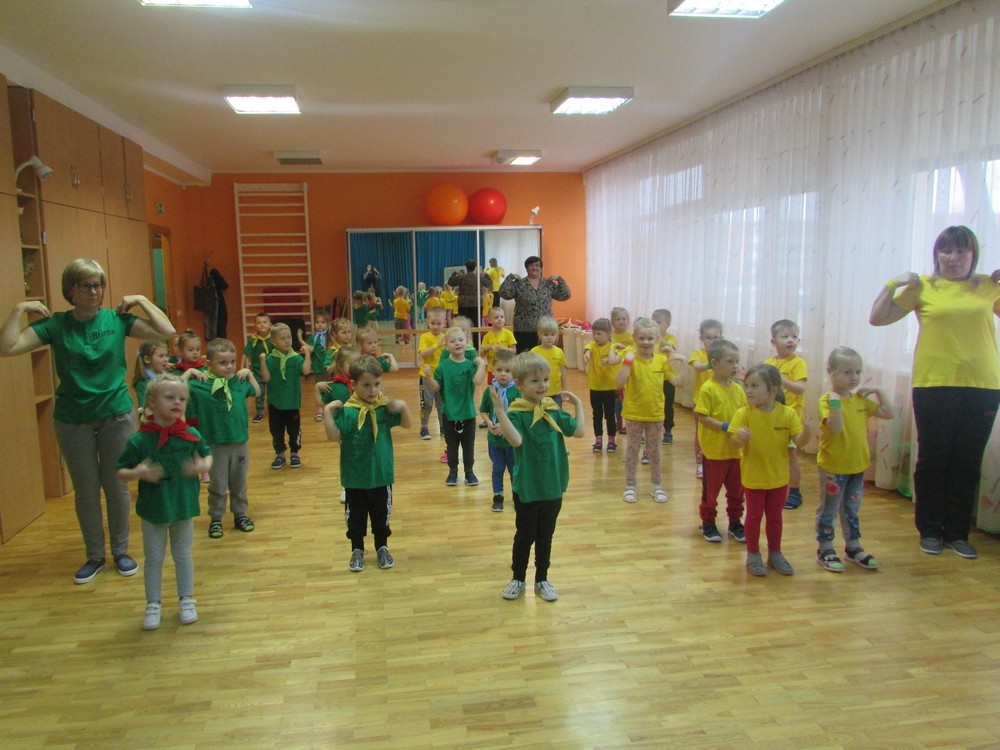 Kad vaikai augtų sveiki, fiziškai ir psichiškai normaliai bręstų, reikia nuolatinio judėjimo. Bėgiodami, šokinėdami, supdamiesi ir laipiodami jie lavina judesius, koordinaciją. Tokios veiklos leidžia vaikams drąsiai išbandyti naujus įgūdžius, lavina mažųjų smulkiuosius kūno raumenis. Paskatinti darželinukus daugiau judėti nėra sunkus uždavinys, nes daugelis mūsų nenuoramų pasižymi judrumu bei aktyvumu. Tereikia tik sukurti judėjimui palankią aplinką, pasirūpinti įdomesnėmis sporto priemonėmis, pasiūlyti originalesnę sportinę veiklą. Įvairių rūšių, dydžių ir spalvų kamuoliai, žymekliai, pėdos, lankai, spalvoti labirintai ir pan. vaikus skatina išbandyti, veikti. Smalsūs ir imlūs darželio ugdytiniai vadovaujami kūrybingų pedagogų geba prigalvoti įvairiausių užsiėmimų, kurių dėka lavėja mažųjų fizinės galios, kuriami bendravimo gebėjimai, ugdomos tokios svarbios vaiko savybės kaip atkaklumas, drausmingumas ir pan. Kasmetinis įstaigos dalyvavimas Šalčininkų rajono savivaldybės remiamose Sveikatos programos projektuose skatina mus, suaugusiuosius, atsižvelgiant į vaikų poreikius pasiūlyti jiems įdomesnių judėjimo priemonių, kurti palankesnes sąlygas būti fiziškai aktyviems. Sportuojantys vaikai, anot psichologų, jaučiasi laimingesni, juos dažniau lydi gera savijauta, būdami drauge jie patiria bendravimo džiaugsmą. Šiais metais už Sveikatos programos „Judėjimas – sveikatos ir stiprybės šaltinis“ skirtas lėšas įsigijome naują sporto inventorių: kėglius, kamuolius, dideles pėdas, balansavimo lavinimui skirtus žaidimus ir kt. Turėdami tokias patrauklias priemones lapkričio viduryje pakvietėme darželio keturmečius į sporto šventę. Mokytojos Helena Songin ir Teresa Reginevič, dirbančios pagal ikimokyklinio ugdymo programą, savo grupės ugdytiniams parinko judrius, auklėtinių mėgstamus žaidimus bei estafetes. Tėvai savo atžalas papuošė spalvingais geltonais ir žaliais marškinėliais. Šventė prasidėjo grupių prisistatymu, dalyviai visi kartu atliko linksmą mankštelę, o apšilę nėrė į žaidimų malonumus. Judrius žaidimus keitė ramesni, ramesnius – dėmesio ir greitumo reikalaujančios estafetės. Sporto šventę „Judėjimas – sveikatos ir stiprybės šaltinis“ vainikavo pats tikriausias sveikučių šėlsmas. Kelios dešimtys vaikų atsineštų animacinio filmo „Minions“ herojų linksmai šėlo kartu su darželinukais.