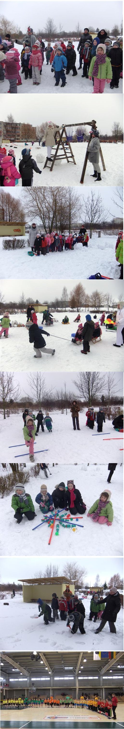 Trečiadienį Šaltis ir miško žvėreliai pakvietė visus vaikus į Sporto šventę lauke „Šalčio nebijok – su draugais sportuok“. Vyko lenktynės tarp grupių: vaikai dalyvavo estafetėse su rogutėmis, kuo greičiau reikėjo sudėti snaigę iš lazdų ir kamuolių, vaikai mėtė sniego gniūžtes į taikinį, stengėsi kuo greičiau prikasti sniego į savo komandos dubenį. Pralaimėjusių nebuvo, nugalėjo draugystė ir gera nuotaika.