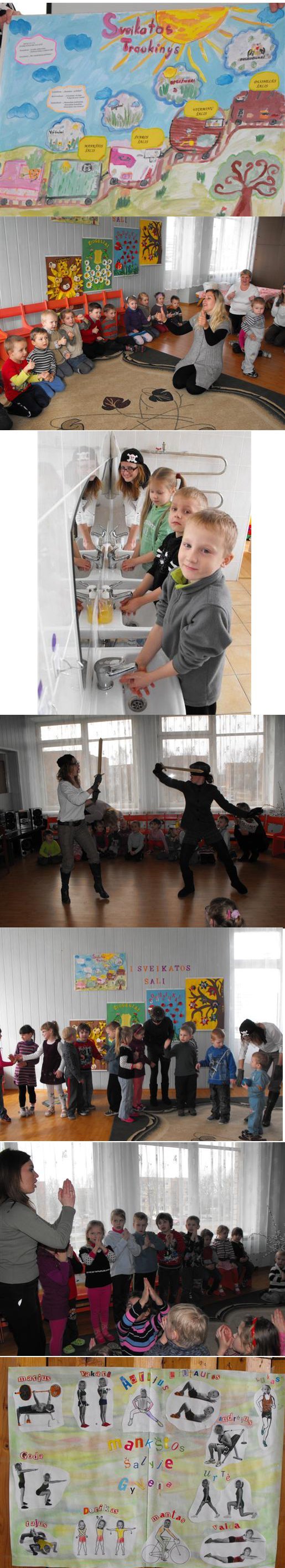 Šiaulių r. Kužių lopšelis-darželis „Vyturėlis“ 2012 m. kovo 12-17 dienomis vyko projektinė sveikatingumo savaitė „Sveikatos traukinys“, kurią pristatė Mergytė – Sveikuolytė ir Daktarytė. Vaikai su „Sveikatos traukiniu“ aplankė „Mankštos šalį“, „Švaros šalį“, „Vitaminų šalį“ ir „Duonelės šalį“.