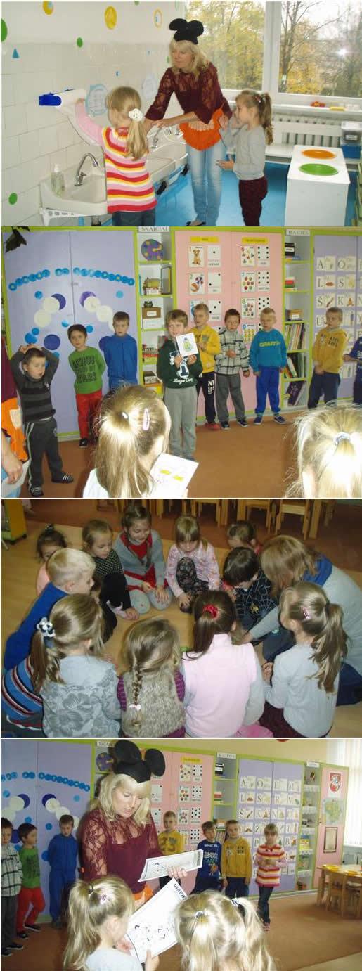 Priešmokyklinuki dainavo, skaičiavo, sprendė galvosūkius, žaidė judriuosius žaidimus. Prisiminė sveiką maistą, minė mįsles apie vaisius ir daržoves. Prieita bendros nuomonės, kad vanduo yra gyvybės ir sveikatos šaltinis. Vaikų teigiamos emocijos, gera nuotaika, fizinis aktyvumas leido suprasti, jog valandėlė buvo įdomi ir naudinga.