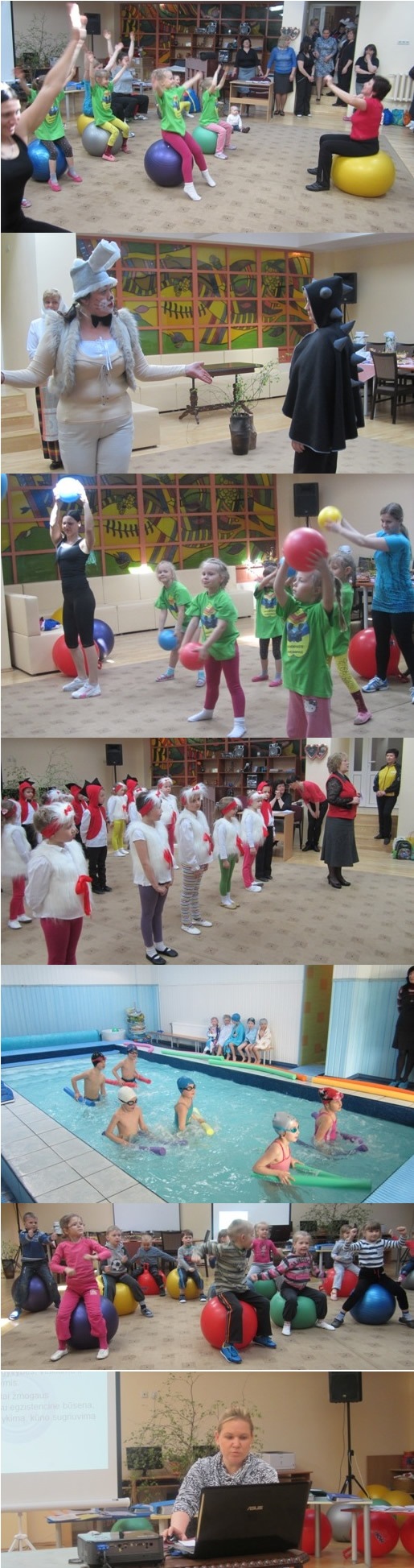 Salėje vyko pilateso ir aerobikos su Gymnic kamuoliais pratybos ne tik mūsų ugdytiniams, bet ir jų mamytėms.Taip pat pratybose dalyvavo svečiai iš kitų įstaigų.