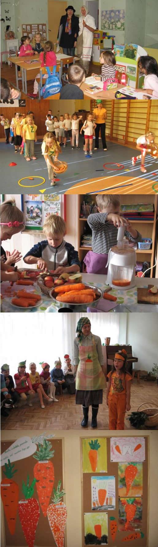 Vaikai su auklėtojomis per savaitę įvairioje literatūroje ieškojo atsakymo kokių vitaminų yra morkose, žaidė daug judrių, muzikinių žaidimų, netradiciniais technikos būdais atliko dailės darbelius, įgytas žinias demonstravo viktorinoje „Rudenėlis į aruodus“.