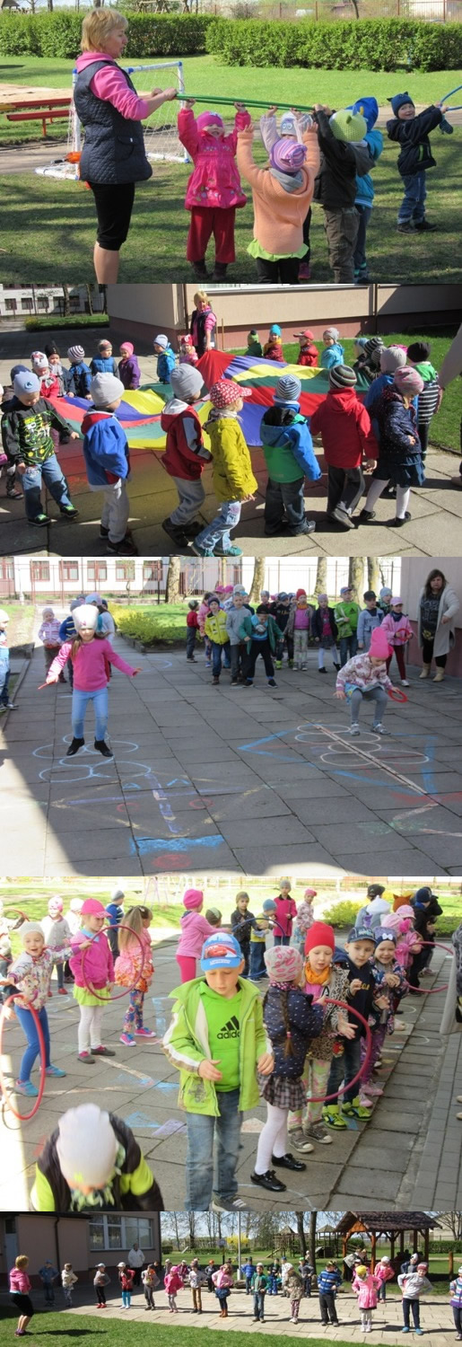 Įsismaginę vaikai įsijungė į estafetes: „Klasės“, „Bėgimas slalomu“, „Lankų siuntimas“.