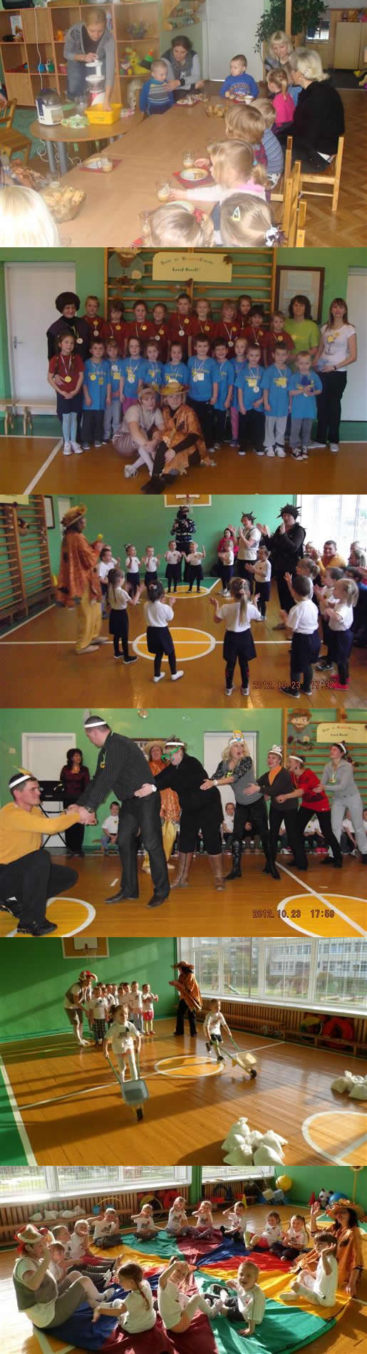 Grupės pasipuošė tėvelių atneštomis rudens gėrybių puokštėmis, eksponatais, vaikų nuotaikingais darbeliais rudens tematika. Šventiniai vakarojimai vyko grupėse kartu su vaikų šeimos nariais. Kartu su Rudenėliu [rengėsi grupių auklėtojos] vaikai su tėveliais ne tik šoko, dainavo, žaidė žaidimus, bet ir tyrinėjo užaugusias daržoves, prinokusius vaisius, spaudė ir skanavo jų sultis, vaišinosi iškeptais mamyčių pyragais, sveikuoliškomis salotomis. Jauki grupės aplinka, pedagogių išradingumas, bendri vaikų ir tėvelių žaidimai suteikė džiaugsmo visiems dalyviams.
