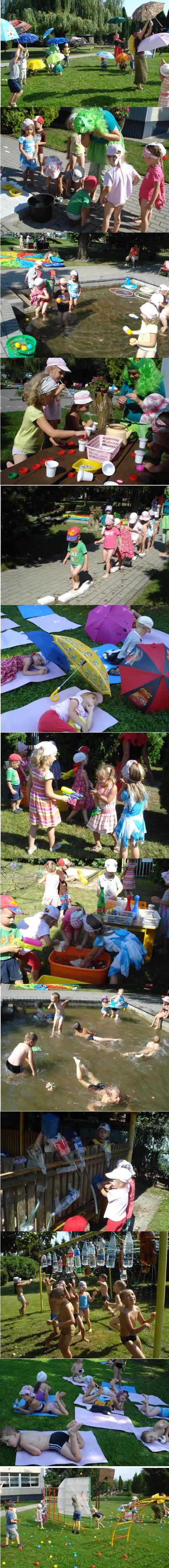 Auklėtojos parengė tris stoteles, kurias aplankę vaikai atliko įvairias užduotis. Atvykę į Boružėlės išpuoštus namus (auklėtoja Aldona Krikštaponienė) vaikai lenktyniavo, taškėsi, atliko tyrinėjimus(skęsta-neskęsta). Jie netgi piešė dideliais teptukais vandeniu ant popieriaus lapų, „puošė“ save ant rankų piešdami apyrankes, draugams ūsus, barzdą… Smagiausia buvo mėtytis vandens balionėliais-emocijos liejosi per kraštus!
