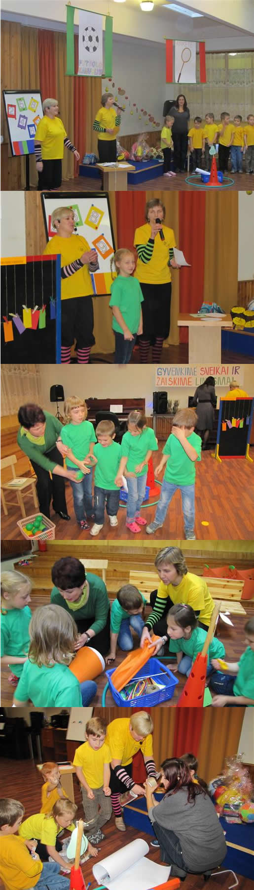 Komandos pristatė namų užduotį, atsakinėjo į klausimus, teikė patarimus sveikos gyvensenos klausimais, ieškojo pasislėpusių skaičių, vaikai stengėsi būti kuo vikresniais, atidesniais ir greitesniais. Išmonės ir kūrybiškumo prireikė gaminant sportinę priemonę, kurią galima naudoti žaidybinėje veikloje grupėje, salėje ir lauke. Renginio dalyviai įveikę kiekvieną užduotį turėjo įsivertinti užduoties atlikimą, kokia gi ji, lengva, sekėsi labai gerai ar buvo sunku ir reikėjo pagalbos. Įsivertinimą vaikai klijavo į parengtas žaismingas knygeles, atsispindinčias viktorinos eigą, lydinčią linksmų personažų.