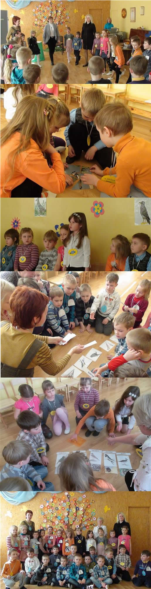 2013 m. balandžio 10 dieną Mažeikių l/d „Berželis“ priešmokyklinio ugdymo grupės „Pelėdžiukai“ vaikai ir pedagogės suorganizavo viktoriną „Pavasaris ant paukščio sparnų“. Joje mielai sutiko dalyvauti, bei savo žiniomis pasivaržyti l/d „Gintarėlis“ priešmokyklinio ugdymo grupės „Smalsučiai“ vaikai. Visiems teko pasukti galveles atsakinėjant į viktorinos metu priešmokyklinio ugdymo pedagogės I. Gorelytės užduotus klausimus. Vaikams teko parodyti savo išmonę, kūrybiškumą pamėgdžiojant paukščių balsus bei deklamuojant eilėraščius, žaidžiant ir lenktyniaujant. Abiejų komandų dalyviai stengėsi kruopščiai ir greitai sudėlioti dėliones, bei atlikti kitas sumanumo, loginio mąstymo, vikrumo reikalaujančias užduotis.