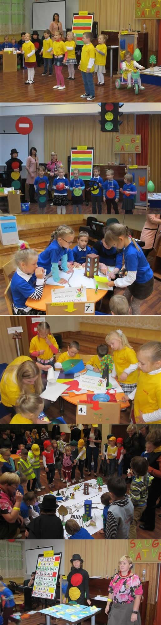 Viktorinos dalyviai pristatė kūrybinę namų užduotį, kurios metu kūrė įvairias saugaus elgesio gatvėje situacijas. Skatinami žaidimo, renginio vedėjų „Pepės‘ ir „Šviesoforo“ vaidino, piešė, konstravo, kūrė istorijas apie tai, į kokią saugaus eismo šalį jie keliauja, ką norėtų joje pamatyti ir ką turėtų pasiimti su savimi, norint saugiai keliauti. Vaikams buvo siūlomos aktyvaus pažinimo, tyrinėjimo veiklos, kurios skatino susikaupti nesiblaškyti, tartis, baigti pradėtą darbą. Viktorinos dalyviai buvo skatinami mąstyti, planuoti ir įgyvendinti įvairius savo sumanymus.